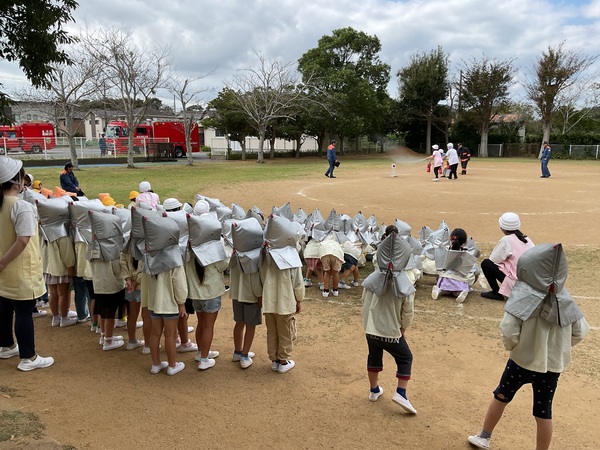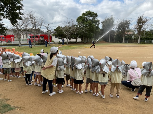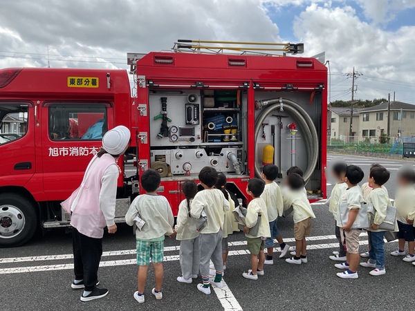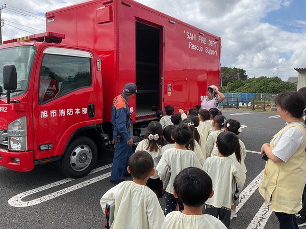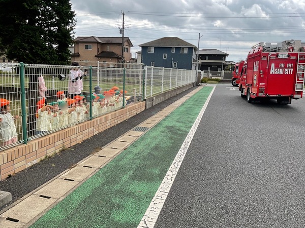 保育園では、地震や火事を想定した避難訓練を毎月、不審者対応の防犯訓練を年2回行っています。 今月の避難訓練は消防署の方に来ていただき、防災訓練として行いました。 想定は給食室の火事。 防災頭巾を被り、速やかにグラウンドに避難することが出来ました。 避難後は職員による消火訓練を行いました。「がんばれー!」と子ども達が応援してくれました。 そした、消防署の方が放水を見せてくれました。間近での放水に「おー!!」と嬉しそうな子ども達。カッコイイ消防士さんの姿に消防士になりたい!と思った子もいるかもしれませんね。 最後には消防車の見学もさせていただきました。今日は資機材搬送車という中々出動しない車両も来ていて、興味津々の子ども達でした。 消防車が帰るときに外で遊んでいた子ども達が皆フェンス沿いに集まり、釘付けな姿も可愛かったです♪ 何も起こらないことが1番ですが、もしもの為にしっかりと訓練を行っています。 消防署の皆さん、ご協力をいただき、ありがとうございました! |
