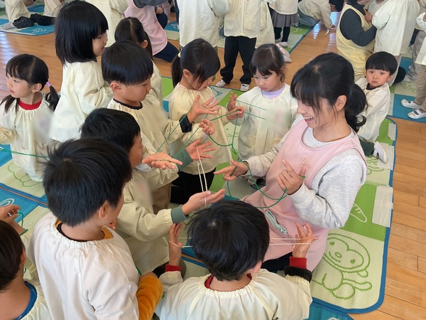 | 2026年が始まり、あっという間に1か月が経ってしまいました。 保育室や園庭から子ども達の元気な声が聞こえ、私達もパワーをもらっています! 1月がはじまってすぐに年長さんの発表会がありました。 年長さんにとっては最後の大きな行事です。体調万全で全員出席で発表会を迎えることが出来ました☆ とても立派な姿に皆の成長を感じ、とても素敵な時間となりました。 卒園まであと少し!毎日が充実した日々となるように過ごしていきたいと思います。 保護者の皆様、ご協力をいただき、ありがとうございました!! 凧揚げやこま回し、福笑いなどのお正月の遊びもたくさん楽しみました♪ レトロ体験では「あやとり」や「お手玉」に挑戦しました。お友達のおばあちゃんも遊びに来てくれ、楽しい時間となりました! 皆、色々なことに興味を持って取り組んでくれて、嬉しいです。 寒さが厳しくなってきましたが、元気に過ごしていきましょう! 本年もどうぞよろしくお願いします! |