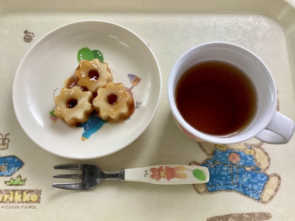 今年最後のおやつは、たくさんの野菜の美味しさがギュッと詰まった温かいスープです🥣 トマト🍅玉ねぎ🧅人参🥕じゃがいも🥔を柔らかく茹でてミキサーにかけ、牛乳🥛やバター🧈を加えてポタージュにしました。 焼いたパン🍞も添えてちょっとおしゃれなスープです🎵焼いたパンは、未満児は細かく切ってスープに浮べてクルトンにします。以上児は細長く切ってスープにつけながら食べるクルートにしました。「こんな食べ方もあるんだね!」とこぼさないように、美味しそうに食べる子どもたちでした。 |